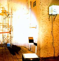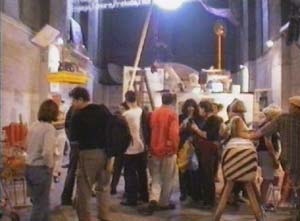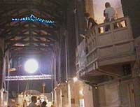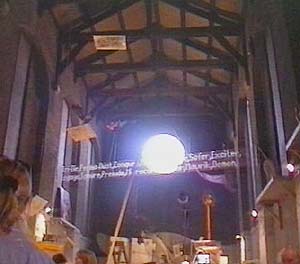 At the 'feet' of the bird were a pair of human adult-size feet which people could stand on to read the texts.